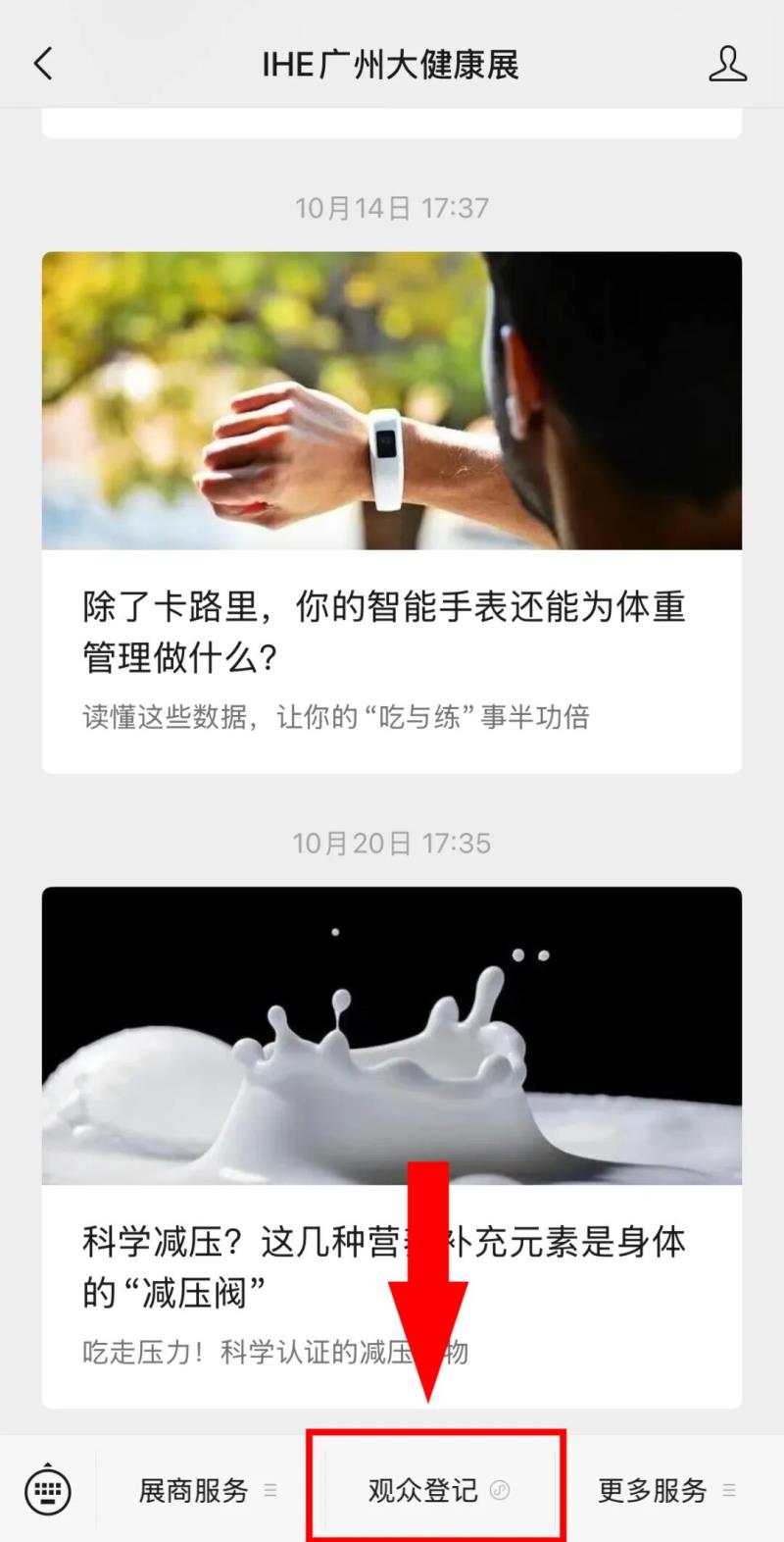 01扫码关注公众号STEP1:扫码关注展会公众号“IHE广州大健康展”。  |