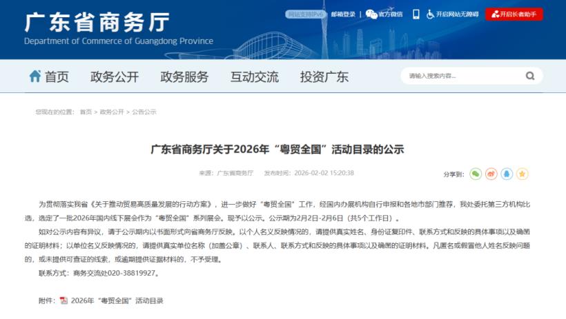 近日,广东省商务厅公布《关于2026年“粤贸全国”活动目录的公示》。广州国际大健康展作为华南地区权威大健康产业盛会,继续入选2026年度的“粤贸全国”活动目录。