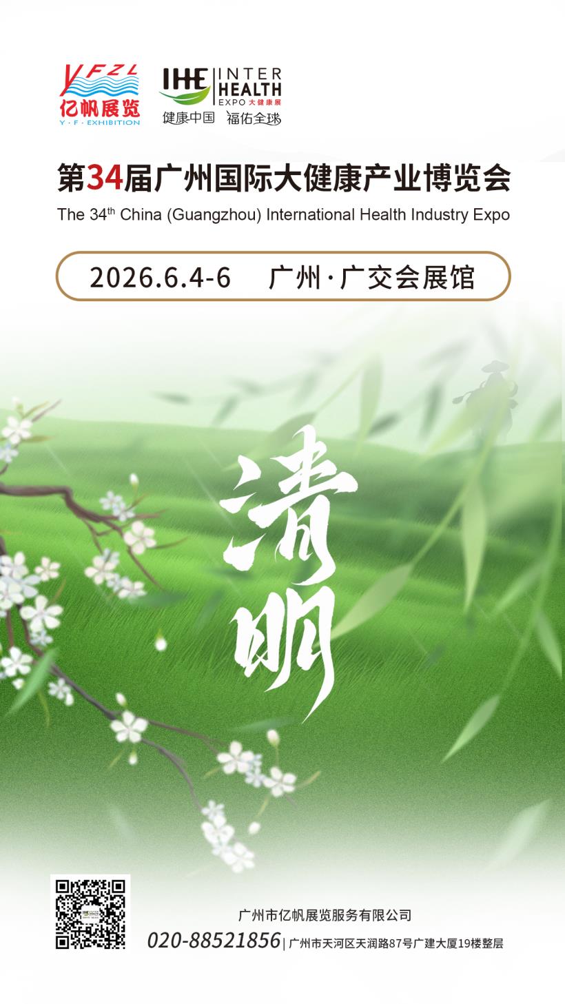 第34届广州国际大健康产业博览会(IHE China)将于2026年6月4-6日在广州广交会展馆举行,诚挚邀请您来参展/参观!